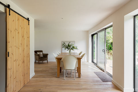 We were delighted to work with our client to fully renovate and remodel an existing detached dwelling that had fallen into disrepair and to transform it into a modern and spacious family home. Our Client was working in the creative industry and looking to establish a solid work base from home. Our initial brief was to deliver a flexible style of open plan living with a studio space that could be fully integrated into the house. The aim was to create a modern, uncluttered environment to combine work life as well as home life (in essence blurring the lines between the two), plus acting as a base for their children to return back to from University. “Like most people we want to maximise the value of what we spend - ie. to a large extent ‘working with what we’ve got’ but enhancing the stature of the property by putting the budget into a clever and clean design and build, using strong, robust materials rather than an elaborate overly designed scheme.” Client brief. Working closely with the Client, we were able to generate a series of design options to allow informed decisions to be made when considering which elements of the property to retain or demolish, including the areas with the potential to extend. In essence the ground floor / gable structure of the property was largely retained, with a new upper brickwork cavity wall and roof structure being provided in order to completely transform the house. This transformation allowed the house to adopt a more contemporary vernacular, into which large areas of glazing were introduced to flood the building with light and to enhance the open-plan experience at ground floor. At first floor level, whilst being constrained to the footprint of the exiting building, the clever use of strategically placed roof lights and vaulted ceilings provided an enhanced sense of space.
